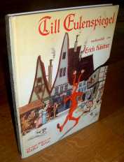 [Kaestner / Trier] Till Eulenspiegel. --> VERKAUFT! [Kästner / Trier] Till Eulenspiegel. Elf seiner Geschichten frei nacherzählt von Erich Kästner mit zehn farbigen Bildern und vielen Zeichnungen von Walter Trier. Basel, M.Ostrau: Atrium Verlag, 1938. 47 Seiten mit Abbildungen + 1 Seite Verlagsanzeigen. Illustrierter Pappband. 4to. (26,5 x 20 cm). 396 g * Erste Ausgabe. In keiner mir vorliegenden Bibliographien korrekt. WG 17; Lämmerzahl-Bensel Seite 12; Biographien von Enderle und Bemmann. Meistens ist der Verlagsort falsch (Zürich), der Untertitel (sofern aufgeführt) ist überall falsch ('Zwölf seiner Geschichten...', offenbar kam ab der 2. Auflage 1949 eine Geschichte hinzu). - Einband mit wenigen schwachen Flecken, hinterer Deckel etwas lichtrandig und gebräunt, Rückenkanten leicht berieben, Rücken unten und oben minim bestossen. - Insgesamt gut erhaltenes Exemplar dieser offenbar seltenen Ausgabe. Deutsche Literatur | Kinder | und Jugendbuecher | Erstausgaben http://comenius-antiquariat.com/bibliophilie/85644/ Nr. 85644 verkauft am 20/12/2004 Ev. weitere Titel von/ ueber Kaestner / Trier