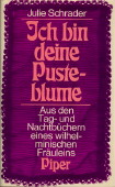 Schrader .:. Ich bin deine Pusteblume Schrader, Julie, Ich bin deine Pusteblume. Die Tag- und Nachtbücher eines wilhelminischen Fräuleins. 10.-14. Tausend. München: Piper, 1971. 231 Seiten. Leinen mit Schutzumschlag. 385 g* Angerichtet und vorgelegt Berndt W. Wessling. ISBN 3-492-01869-6 | Schrader | Deutsche Literatur Buchnummer 117365 CHF 23.50  | |  |