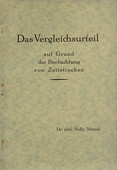 | Schmid .:. Das Vergleichsurteil Schmid, Nelly,  Das Vergleichsurteil auf Grund der Beobachtung von Zeitstrecken. Thayngen: Augustin, 1929. 72 Seiten mit Literaturverzeichnis. Kartoniert. Grossoktav. 177 g* Aus dem Inhalt: Das Bewusstsein; Fechners Psychophysik und Wilhelm Webers Einwände; Experimente über den Zeitsinn. Widmung der Verfasserin auf dem Titelblatt. - Kleine Rostflecken bei der Klammerheftung.
