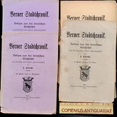 Sterchi .:. Berner Stadtchronik Sterchi, Jakob, Berner Stadtchronik. Notizen aus der bernischen Geschichte auf alle Tage der Jahres zusammengestellt. Bern: Druck und Verlag des "Berner Tagblatt", 1895-1896. 2 Bände, 144 und 156 Seiten mit einer Abbildung. Broschiert. Kleinoktav. 146 g* I. Band (Januar bis Juni). II. Band (Juli bis Dezember). - Gebräunt, Band 1 locker, Umschlag lose, mit Rissen und Fehlstellen; Band 2 mit 2 (identischen) Umschlägen, davon einer lose und beide mit Rissen Sterchi | 1850-1899 | Helvetica | Schweiz | Bernensia Buchnummer 123864 CHF 25.00  | |  |