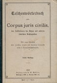 Taschenwoerterbuch .:. Corpus juris civilis Taschenwörterbuch zum Corpus juris civilis den Institutionen des Gajus und anderen römischen Rechtsquellen. 3. Auflage. München: H. W. Müller, 1918. 172 Seiten, Fraktursatz. Halbleinen. Kleinoktav. 215 g* Mit einer Uebersicht über Juristen, Leges und Senatus Consulta nebst 2 Verwandtschaftstafeln. - Erste Seiten schwach stockfleckig, obere Ecke leicht bestossen. Taschenwoerterbuch | Lexika | Dictionary | Altphilologie Buchnummer 127265 CHF 20.00  | |  |