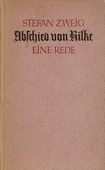 Zweig .:. Abschied von Rilke Zweig, Stefan. Abschied von Rilke. Eine Rede. Tübingen: Rainer Wunderlich, 1952. 30 Seiten. Pappband (gebunden). 91 g* Erste Ausgabe, WG II, 73. - Etwas gebräunt, vordere Rückenkante oben mit Riss, Name auf dem Vorsatzblatt, Deckel leicht konkav verzogen. Zweig | Deutsche Literatur | Rilke Buchnummer 127334 CHF 18.00  | |  |