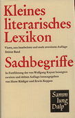 Kleines .:. literarisches Lexikon [1] Kayser, Wolfgang [Hrsg.], Kleines literarisches Lexikon. 1. Band. 3., völlig erneuerte Auflage. Bern, München: Francke, 1961. 807 Seiten mit Register. Leinen mit Schutzumschlag. Kleinoktav. 591 g* Sammlung Dalp; 15. - Literarisches Sachwörterbuch "Abenrteuerroman - Zeugma" und Autorenwörterbuch (bis zum Ende des 19. Jahrhunderts) "Abaelard - Zschokke". Die 3. Auflage wurde erstmalig in 2 Bänden herausgegeben, wobei die Literatur des 20. Jahrhunderts in einen 2. Band ausgesondert wurde. - Schutzumschlag mit Gebrauchsspuren. Kleines | Lexika | Dictionary | Literaturwissenschaft allgemein Buchnummer 127439 CHF 18.00  | |  |