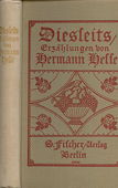 Hesse .:. Diesseits Hesse, Hermann, Diesseits. Erzählungen. 24.-28. Auflage. Berlin: S.Fischer, 1921. 308 Seiten, Fraktursatz. Leinen mit Deckelillustration und Farbkopfschnitt. 360 g* Enthält: Aus Kinderzeiten; Die Marmorsäge; Heumond; Der Lateinschüler; Eine Fussreise im Herbst. - Einband schwach lichtrandig, Rücken oben leicht bestossen, Papier gebräunt. Hesse | Deutsche Literatur Buchnummer 127504 CHF 20.00  | |  |