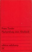 Tumler .:. Nachpruefung eines Abschieds Tumler, Franz, Nachprüfung eines Abschieds. Erzählung. 1. - 10. Tausend. Frankfurt a.M.: Suhrkamp, 1964. 91 Seiten. Kartoniert mit Schutzumschlag. Kleinoktav. 98 g* edition suhrkamp; 57. - Schwache Randanstreichungen mit Bleistift, letzte Seiten mit Braunschatten von Zeitungsausschnitt. Tumler | Deutsche Literatur Buchnummer 128035 CHF 12.00  | |  |