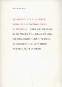 Reust .:. Le monde dit Reust, Hans Rudolf, Le monde dit = Die Welt spricht = Il mondo dice = Il mund di. über das Gesamtkunstwerk von Rémy Zaugg im eidgenössischen Verwaltungsgebäude Monbijoustrasse 72/74 in Bern. Bern: Bundesamt für Kultur, 1998. 55 Seiten mit Abbildungen. Kartoniert. Grossoktav. 163 g* Text nur deutsch. - Umschlag fleckig. Reust | Kunst | Remy Zaugg Buchnummer 128323 CHF 14.00  | |  |