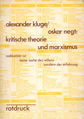 Kluge / Negt .:. Kritische Theorie und Marxismus Kluge, Alexander, Oskar Negt, Kritische Theorie und Marxismus. S'Gravenhage: Eversdijck, 1974. 132 Seiten mit Abbildungen. Kartoniert. 178 g* Rotdruck, 33. - Radikalität ist keine Sache des Willens sondern der Erfahrung: zwei Seminare von Alexander Kluge im Frühjahr 74 an der Universität Frankfurt "Zur Theorie des Films" und eine Rede von Oskar Negt "Der Beitrag der kritischen Theorie zum Marxismus" / Alexander Kluge, Oskar Negt, Tonbandprotokolle geschrieben von B. K. - Schwache Gebrauchsspuren, Stempel auf dem Titelblatt, 1 Anstreichung auf Seite 9. Kluge Negt | Sozialismus | Kommunismus | Marxismus https://comenius-antiquariat.ch/buch/131013.html Buchnummer 131013 CHF 14.00  | |  |