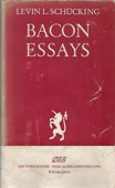 | Bacon .:. Essays Bacon, Francis,  Essays. Vollständige Ausgabe. Wiesbaden: Dieterich, 1946. XLIII, 275 Seiten mit Abbildungen und Register. Leinen mit Schutzumschlag. Kleinoktav. 235 g* Sammlung Dieterich; 71. - Deutsch von Elisabeth Schücking. Herausgegeben von L. L. Schücking. - Lizenz der Dieterich-Ausgabe. - Schutzumschlag lichtrandig, mit Stock- und Feuchtigkeitsflecken, Schnitt, erste und letzte Seiten etwas stockfleckig, Kellergeruch.